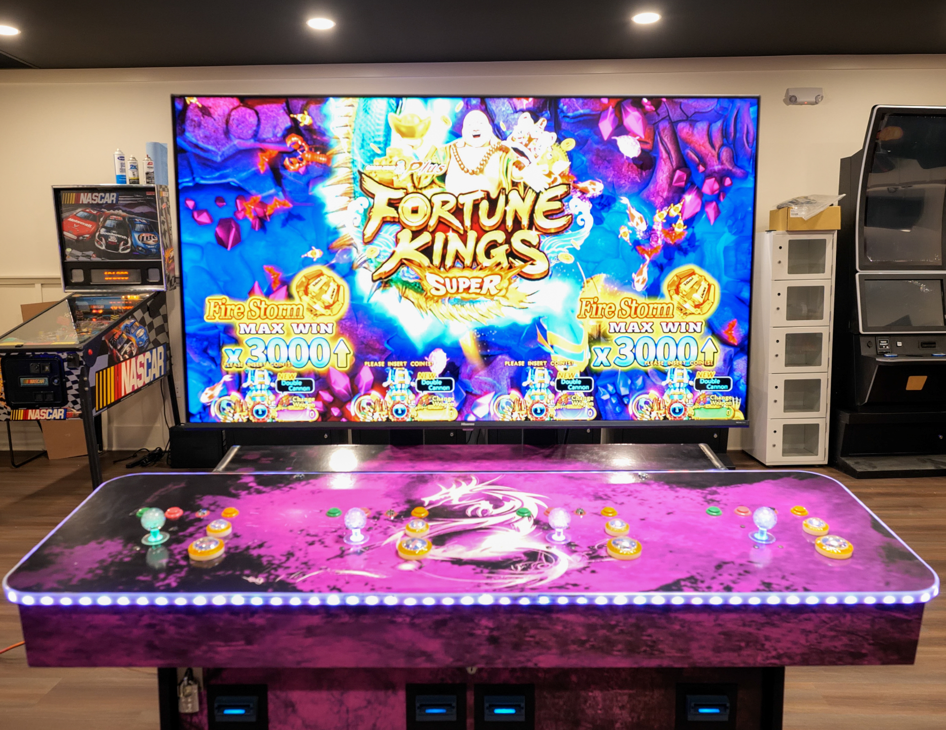 This Cabinet is IGS board ready and features LED lights around the playfield deck. The cabinet also comes complete with a 12/5v power supply and all player harnesses. The harnesses are pre wired for 12v Bill acceptors and printers. The player station doors are pre cut so you can easily mount the printers and Bill validators on the doors. The player station harnesses installed are dual harnesses meaning they can be used for both IGS and NON IGS games by just adding a printer fooler. We generally install these Cabinets with a 58”-60” monitor.